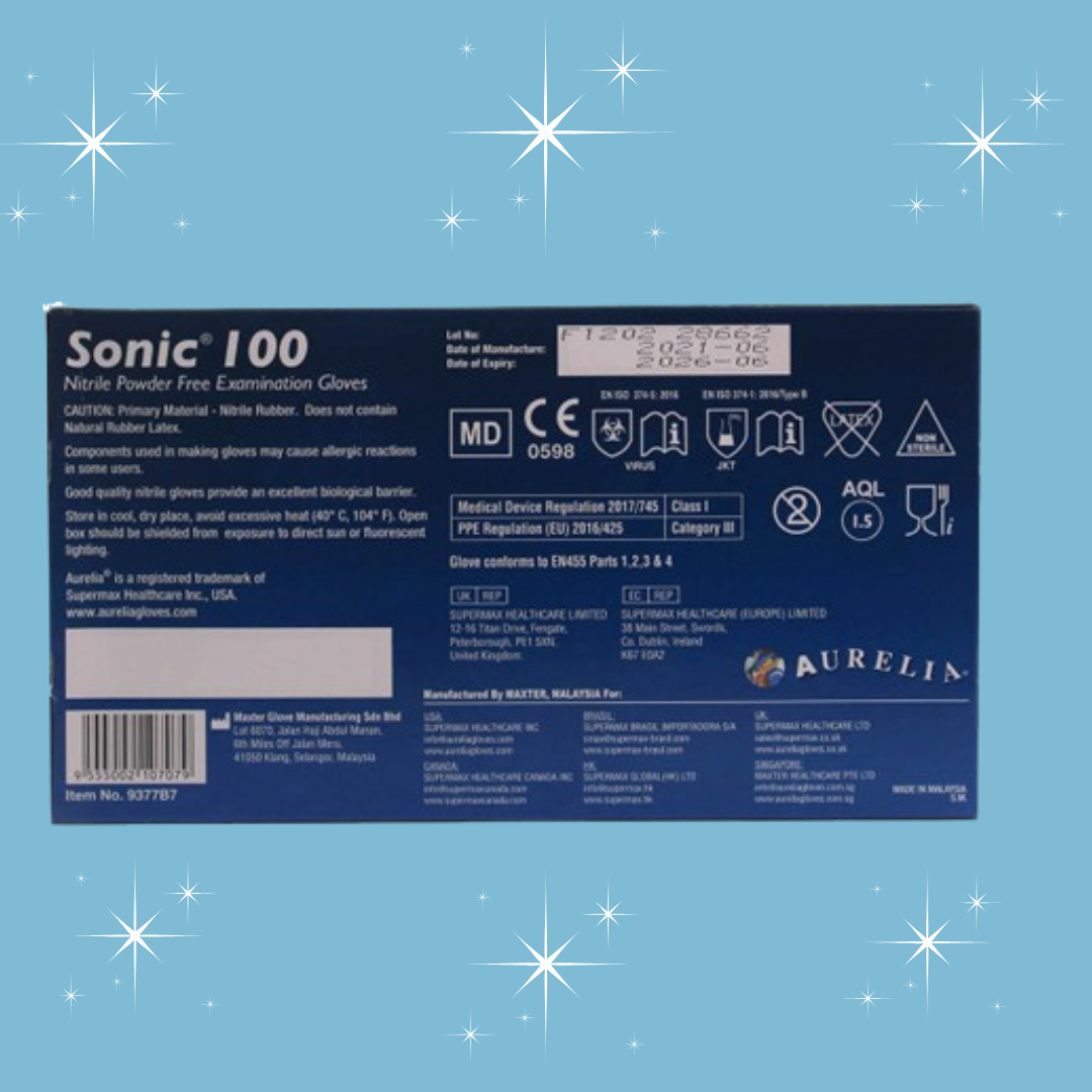 The Aurelia Sonic 100 Gloves are ultra-thin (2.2mil), offering maximum comfort, flexibility, and tactile sensitivitywithout compromising protection. They are widely used by the NHS, trusted by healthcare professionals for reliability, high performance, and excellent barrier protection with an AQL 1.5 rating.