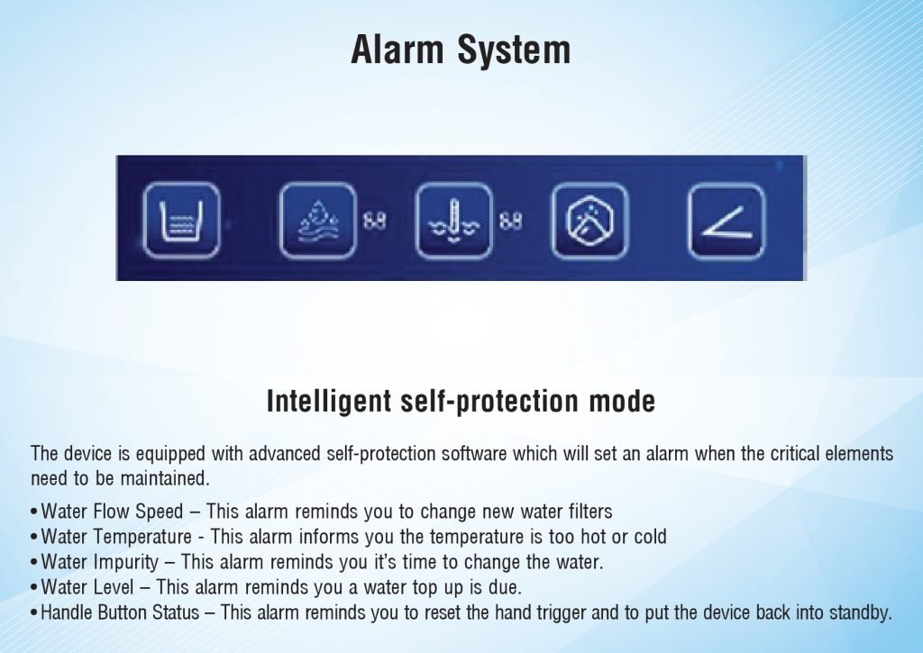 - Water Impurity Alert – Change water required