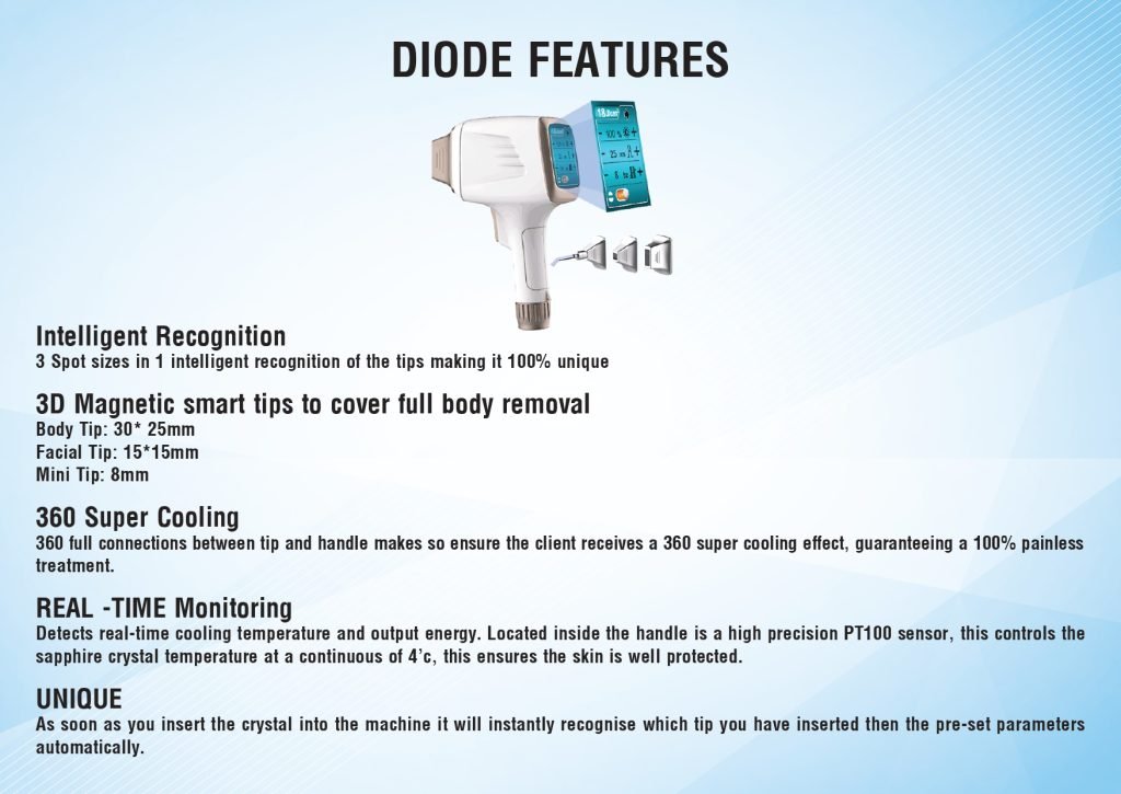 - 755nm – Excellent for fair skin and fine hair